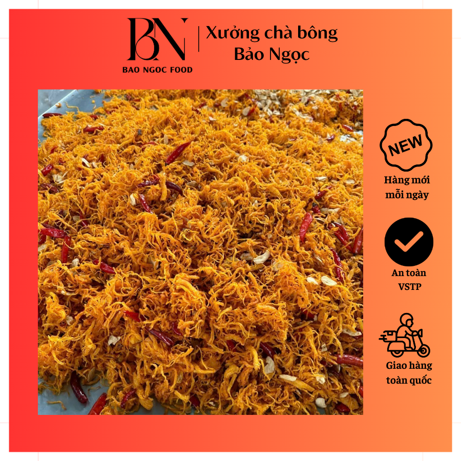 Tại xưởng chà bông Bảo Ngọc, chất lượng luôn được chú trọng. Chúng tôi chọn lựa nguyên liệu từ những nguồn tốt nhất, kết hợp với kỹ thuật chế biến tinh tế để tạo nên những sản phẩm thơm ngon, đậm đà.